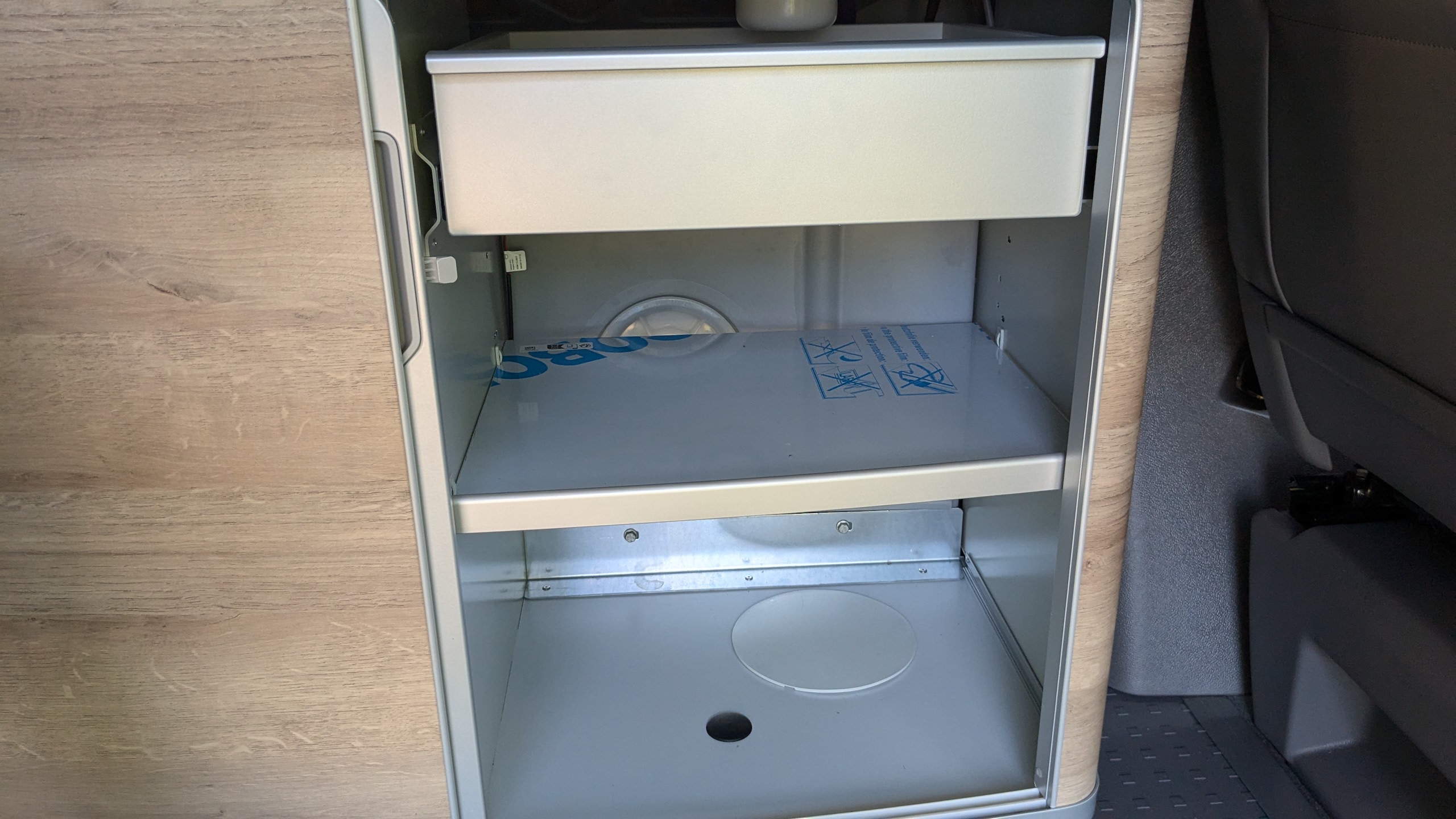 Vrcholná verze Ocean, kterou jsme testovali, má v levé části interiéru také kuchyňskou linku, ve které nechybí plynový vařič, lednice a spousta odkládacích polic. Díky tomu máte své věci v autě přehledně uložené a není problém si na cestách připravit jídlo, pokud dáte přednost jídlu v přírodě před restaurací.