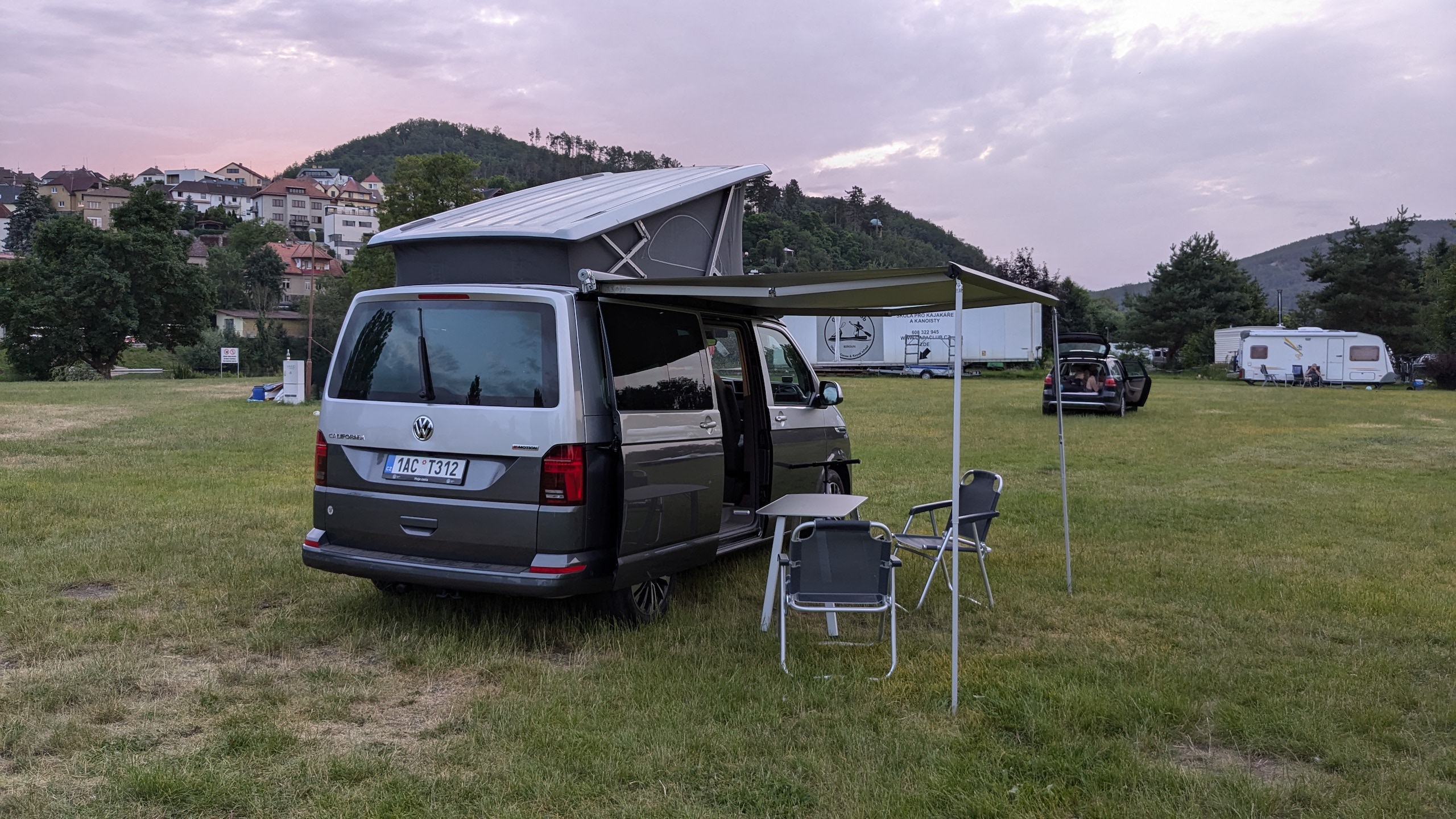 Najíst se samozřejmě můžete uvnitř auta díky zmíněnému stolku a otočným sedačkám, ale to nemá tu správnou atmosféru. Posezení si totiž můžete udělat i venku a třeba jen využít výsuvnou markýzu na boku auta, aby vás chránila před přímým sluncem. A kde vezmete venkovní židle a stolek? To je jeden z mnoha geniálních detailů čtvrté generace Californie. Stolek je totiž v pravých výsuvných dveřích. Vypadá jako součást vnitřní výplně dveří, ale po odjištění pojistky z nich vyndáte rozkládací stolek. A co židle? To je druhá podobná skrýš. Ty jsou totiž schované pro změnu ve výplni zadních výklopných dveří. Stačí rozepnout zip a vytáhnout je. Takže vám v autě nezabírají místo, ale máte je pořád k dispozici.